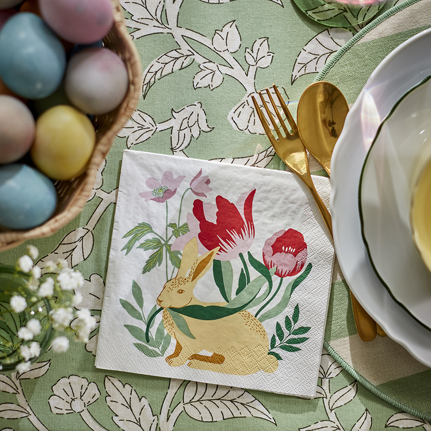 Papierové obrúsky TJÄRLEK s pestrým vzorom dodajú stolu sviatočný charakter hneď, ako ich rozložíte. Pekne doplnia každé prestieranie, či už staviate na elegantnej jednoduchosti, alebo na jarných farbách.