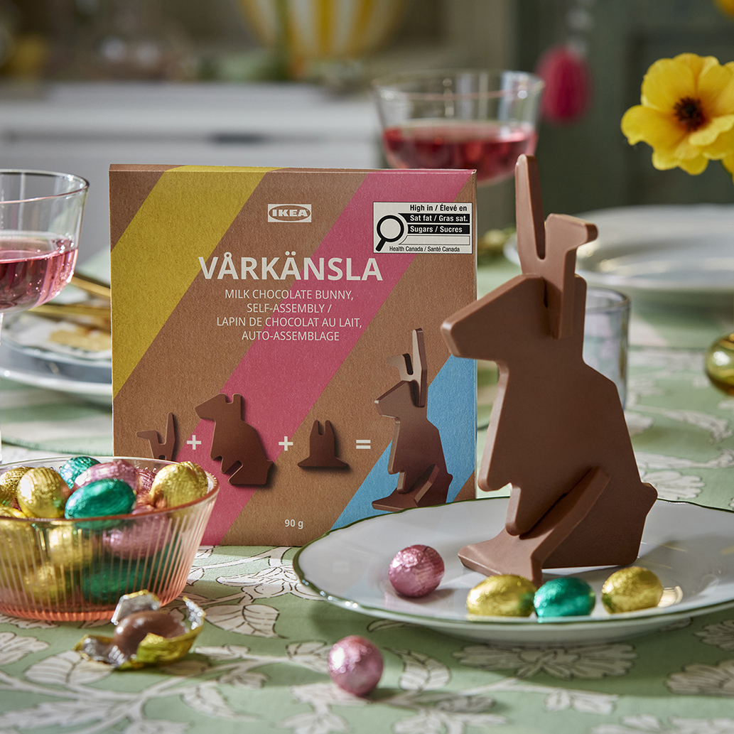 Čokoláda v hlavnej úlohe. Vajíčka VÅRKÄNSLA z mliečnej čokolády s lieskovou náplňou a zajačik VÅRKÄNSLA z mliečnej čokolády sú sladkou bodkou za celou veľkonočnou atmosférou. Schované do košíka, položené na tanier alebo jednoducho ponechané na viditeľnom mieste, odkiaľ miznú rýchlejšie, ako by ste čakali.