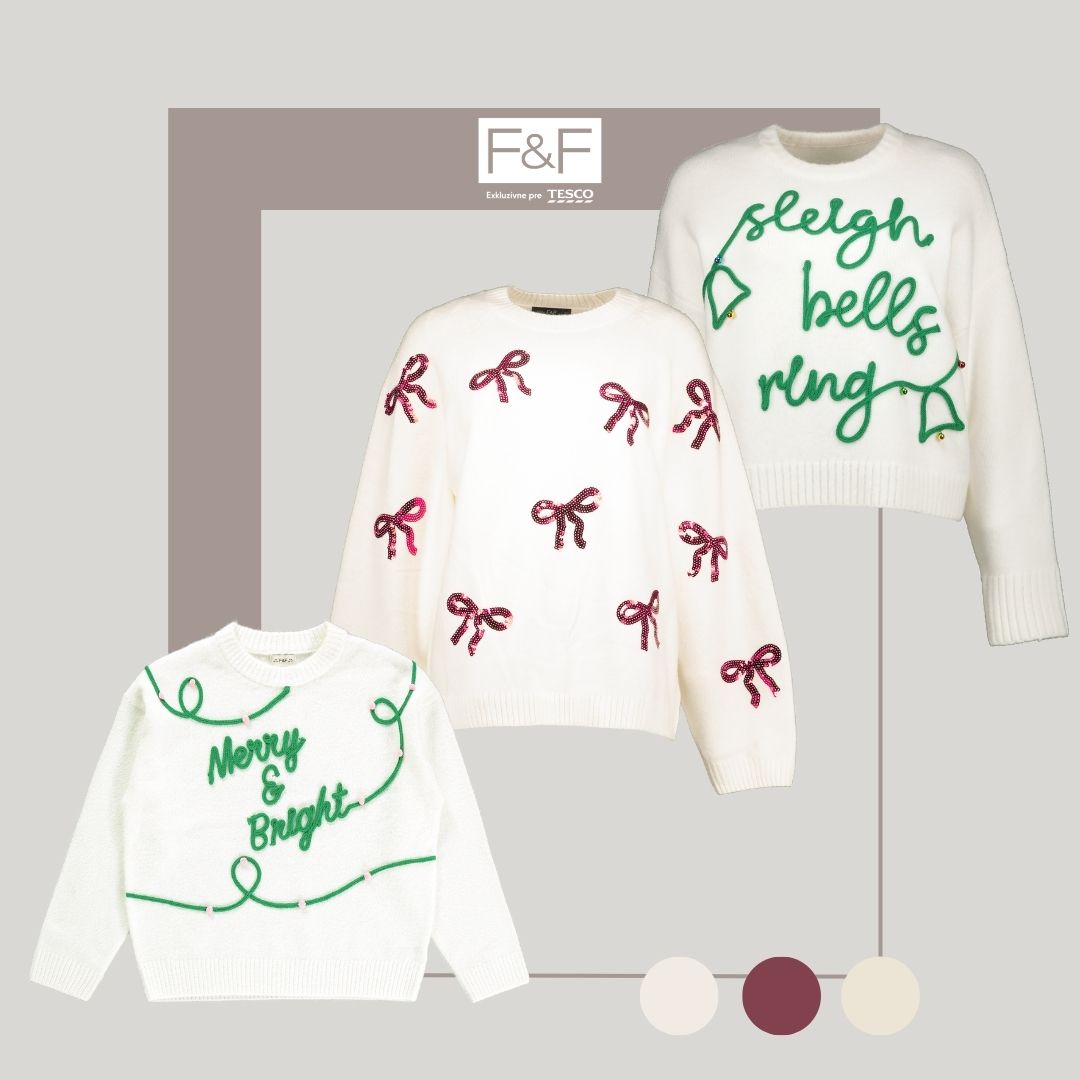 Najkrajšie obdobie roka klope na dvere a spolu s ním aj hľadanie vhodných darčekov pre našich najbližších. Kolekcia F&F prináša inšpirácie, ktoré vás nielen zahrejú, ale aj rozžiaria pri vianočnom stole, na večierkoch či počas sviatočných chvíľ s rodinou. Od mäkučkých svetrov a pyžám až po elegantné kúsky na výnimočné príležitosti či hrejivé kabáty, v ponuke značky nájdete všetko, čo vám pomôže prežiť najkrajšie obdobie v znamení pohody a elegancie.